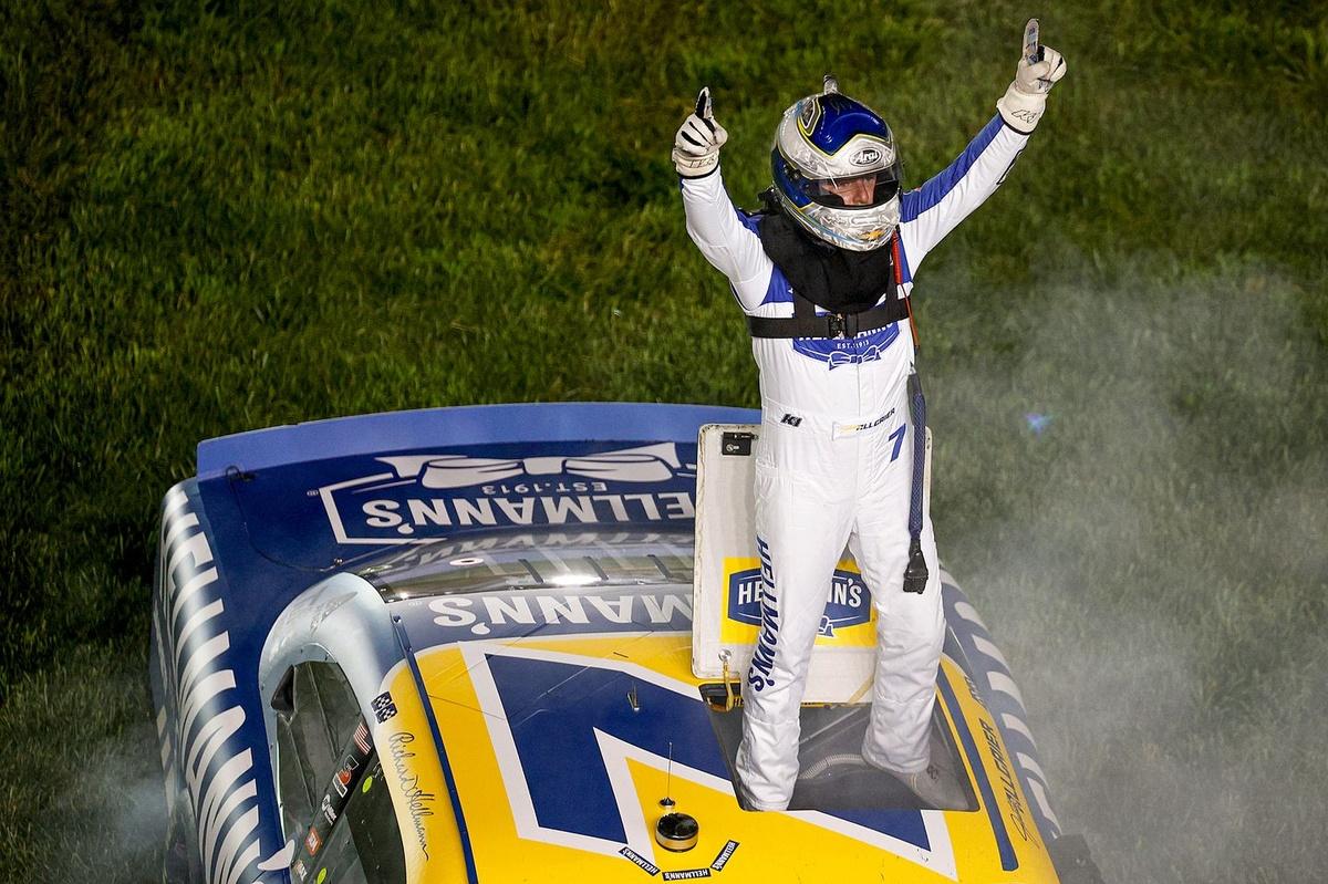 The Haas Factory Team duo of Sam Mayer and Sheldon Creed finished third and fourth, respectively. Newly crowned Coke 600 winner Ross Chastain made a late-race pass on Aric Almirola to take the final spot inside the top five. Almirola, Austin Hill, Jesse Love, Daniel Dye, and Carson Kvapil filled out the remainder of the top ten.