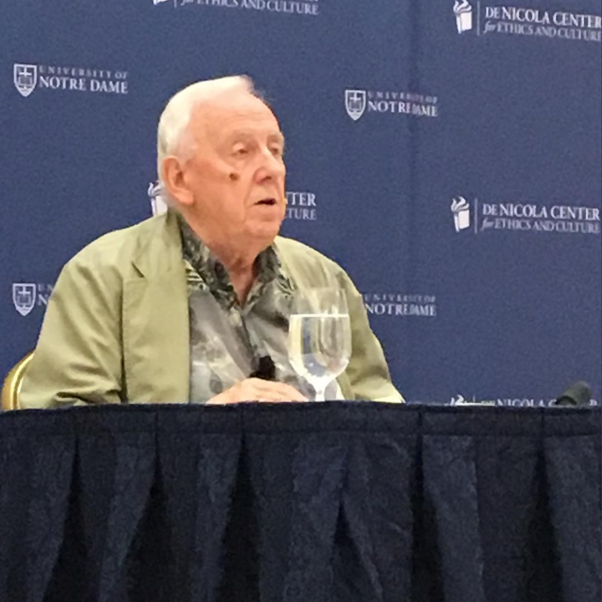 Thus MacIntyre is the sort of philosopher whom one often first encounters in unusual ways, outside being taught him in a classroom. Thus one colleague at “To What End?” helpfully started conversations with “What’s your MacIntyre story?” – imagining, rightly, that everyone had their own personal story of encountering his ideas, more interesting than being simply taught him in an Intro to Ethics class. (Now that I think of it, the one place I remember being asked a similar question was on a long tour around the Laphroaig whisky distillery in Scotland, which also began with the guide asking “What’s your Laphroaig story?” – a comparison that would likely have pleased MacIntyre, as he always took his philosophy to be deeply informed by his Scottishness.)